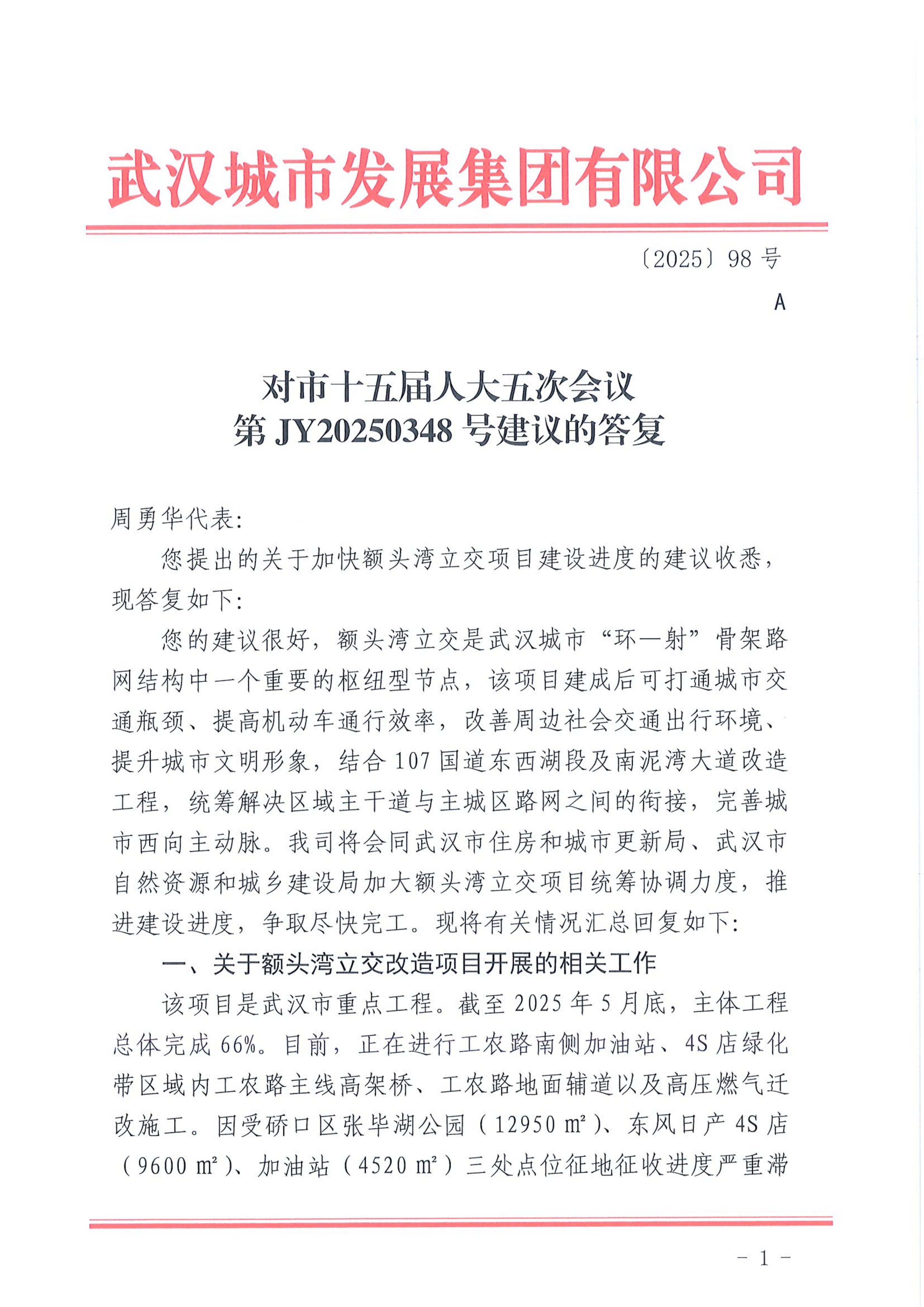 對(duì)市十五屆人大五次會(huì)議第JY20250348號(hào)建議的答復(fù)